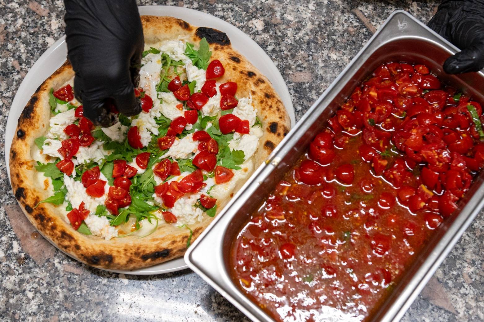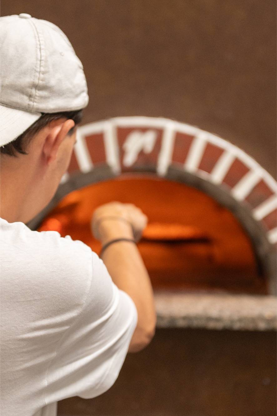 La nostra pizza nasce da ingredienti freschi e selezionati con attenzione, lavorati con rispetto per la materia prima e secondo processi che esaltano il gusto naturale di ogni componente. L’impasto, frutto di una lunga lievitazione, viene steso a mano e cotto esclusivamente nel forno a legna, che regala quella fragranza unica e inconfondibile, impossibile da replicare con altri metodi di cottura.