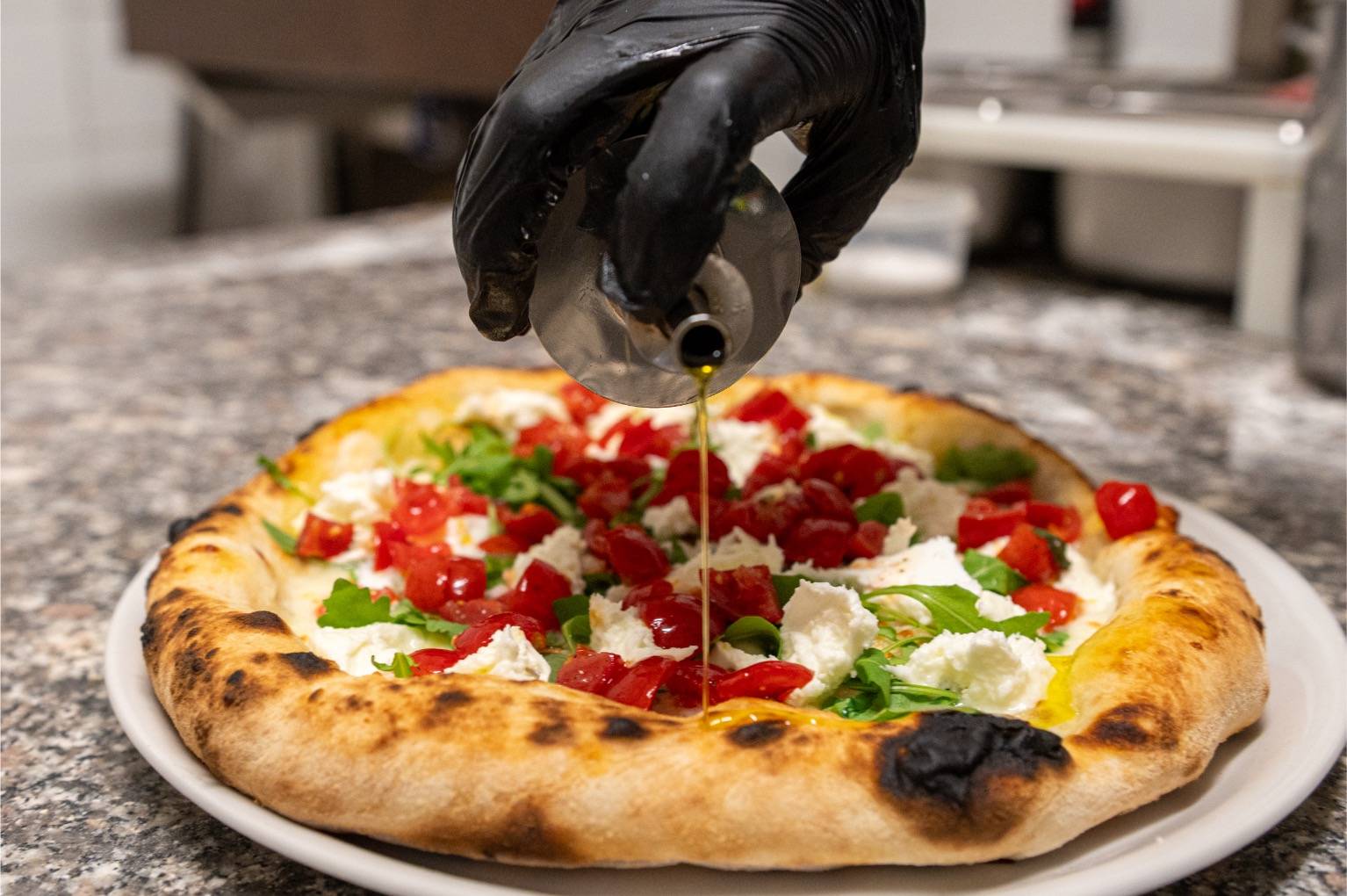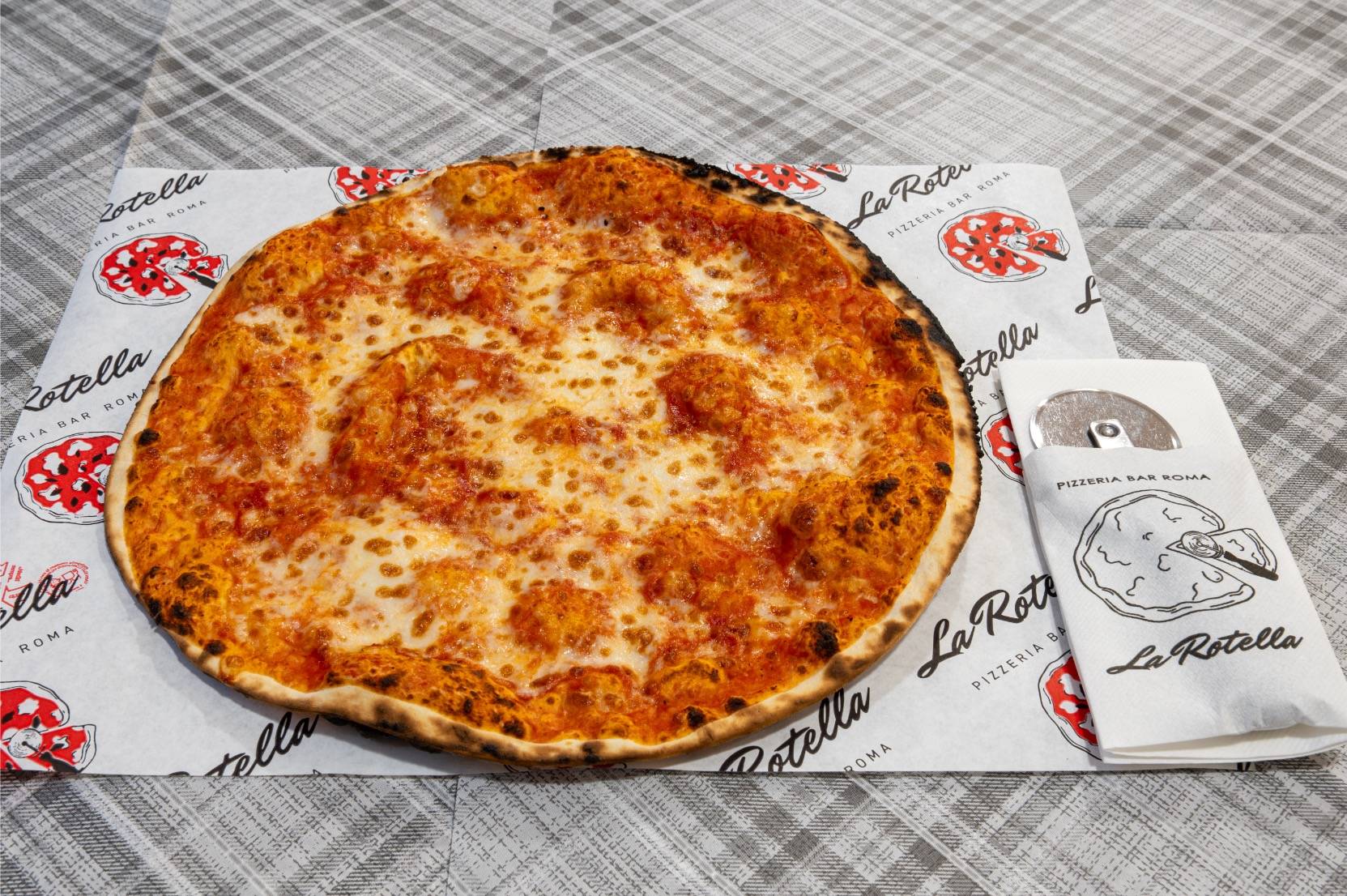 Tagliata con la rotella direttamente al tavolo, regala un'esperienza rustica e genuina che celebra il vero spirito della pizza italiana.