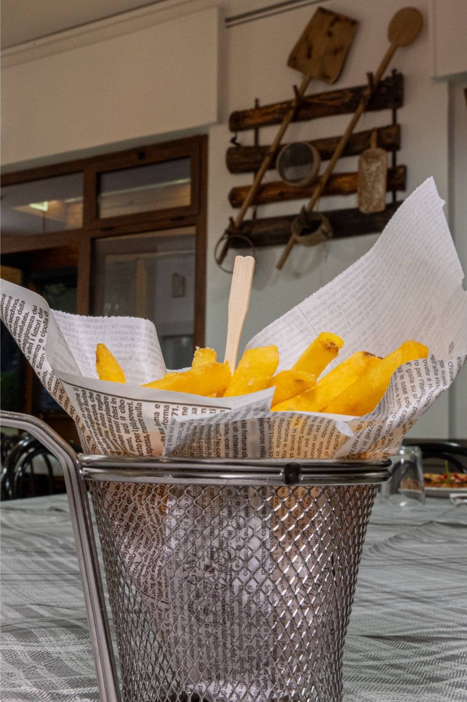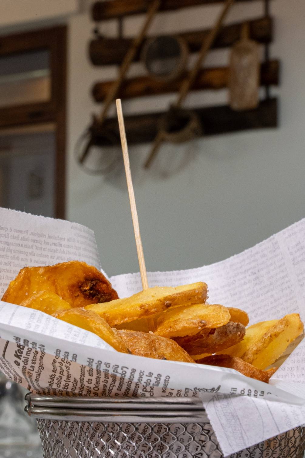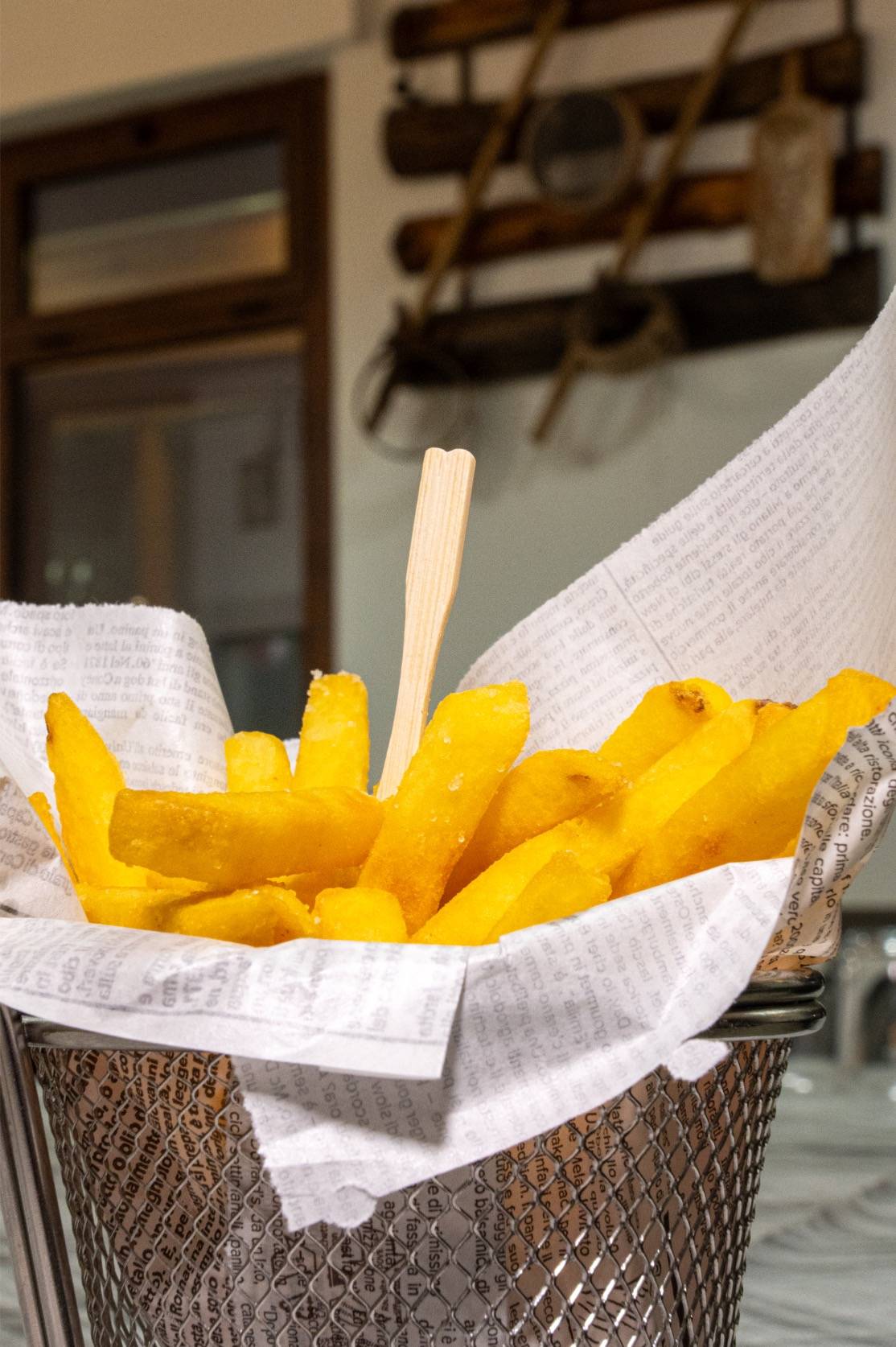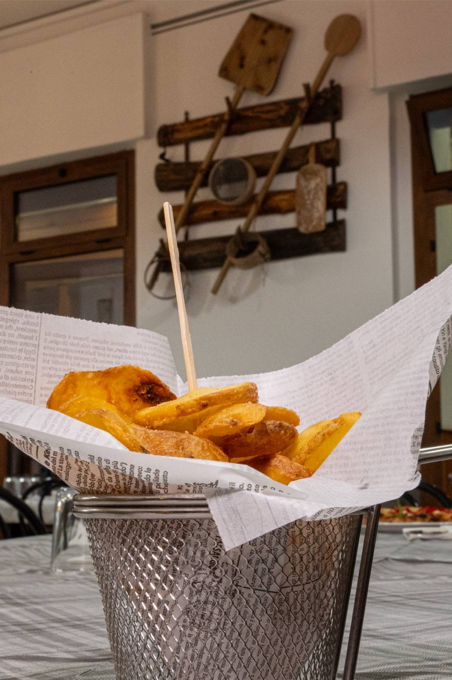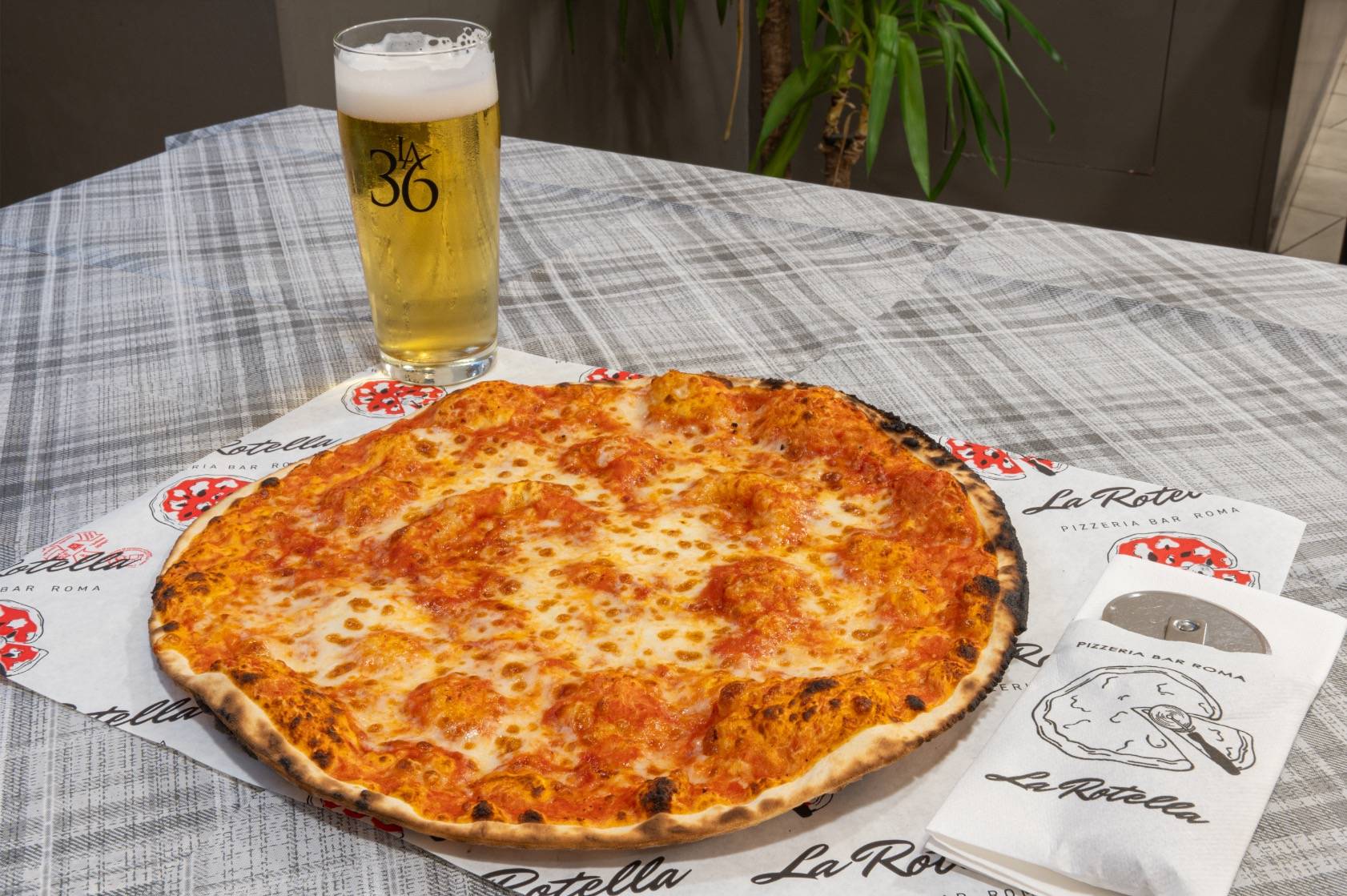 Come da antica tradizione, la pizza viene servita su un foglio di carta, un dettaglio semplice ma prezioso che permette di mantenere intatto il calore e la croccantezza fino all’ultimo boccone. Al tavolo, il taglio con la rotella davanti al cliente diventa un piccolo rito conviviale: un gesto che richiama le usanze di una volta e trasmette un senso di familiarità e genuinità, trasformando ogni assaggio in un momento di condivisione.