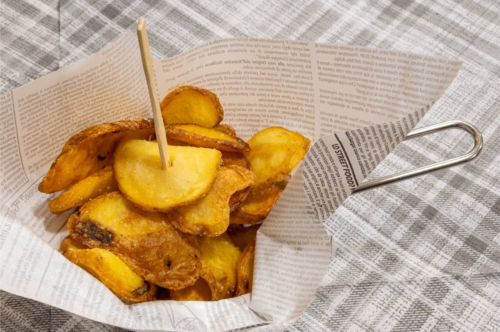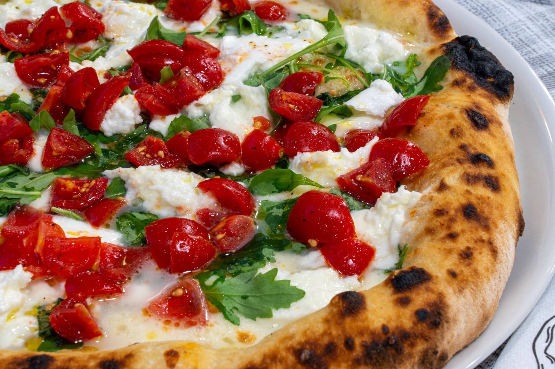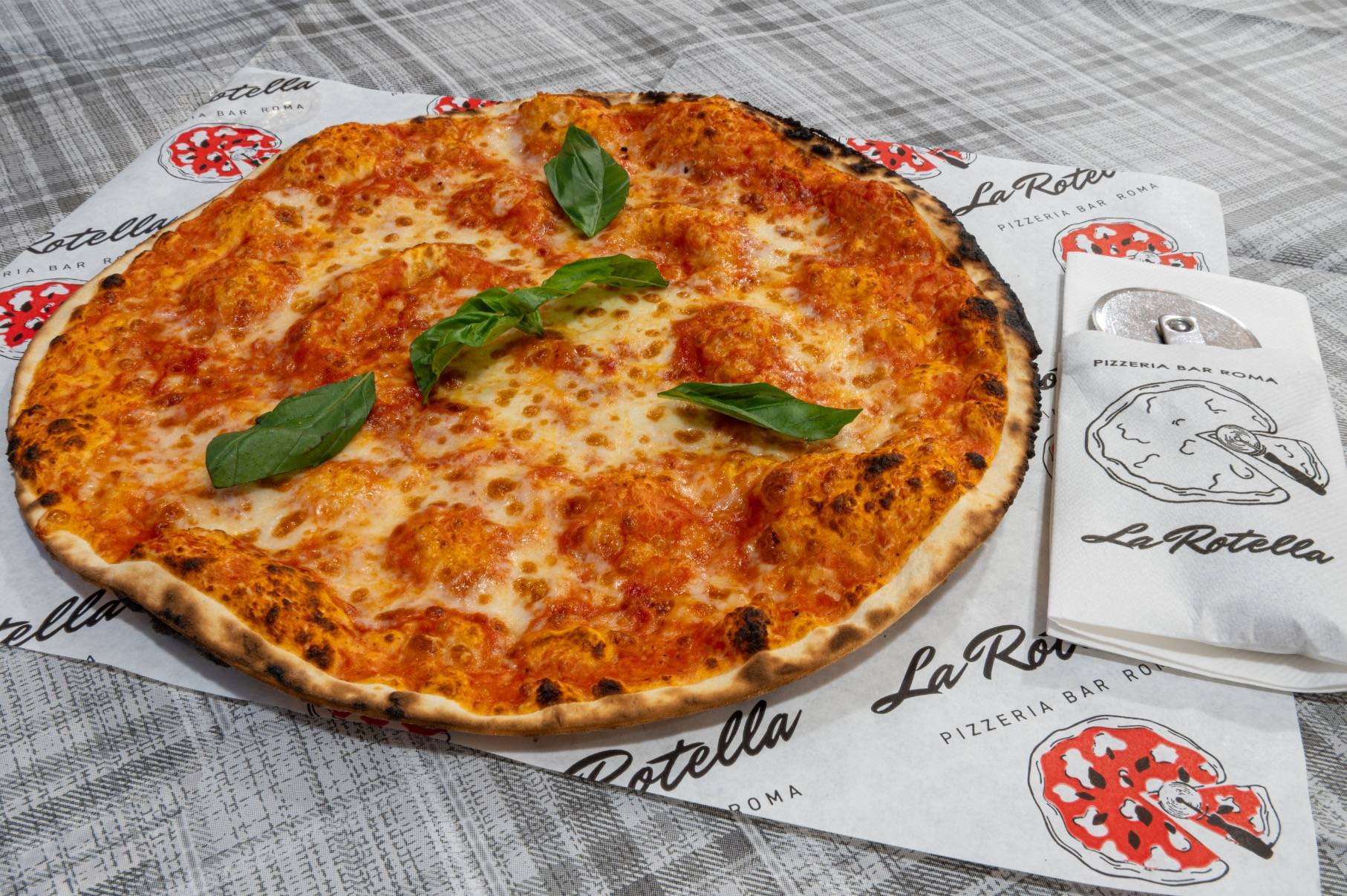 Qui, la pizza cotta a forno a legna viene servita su un foglio di carta, come da antica usanza, mantenendo così il calore e la fragranzafino all'ultimo morso!