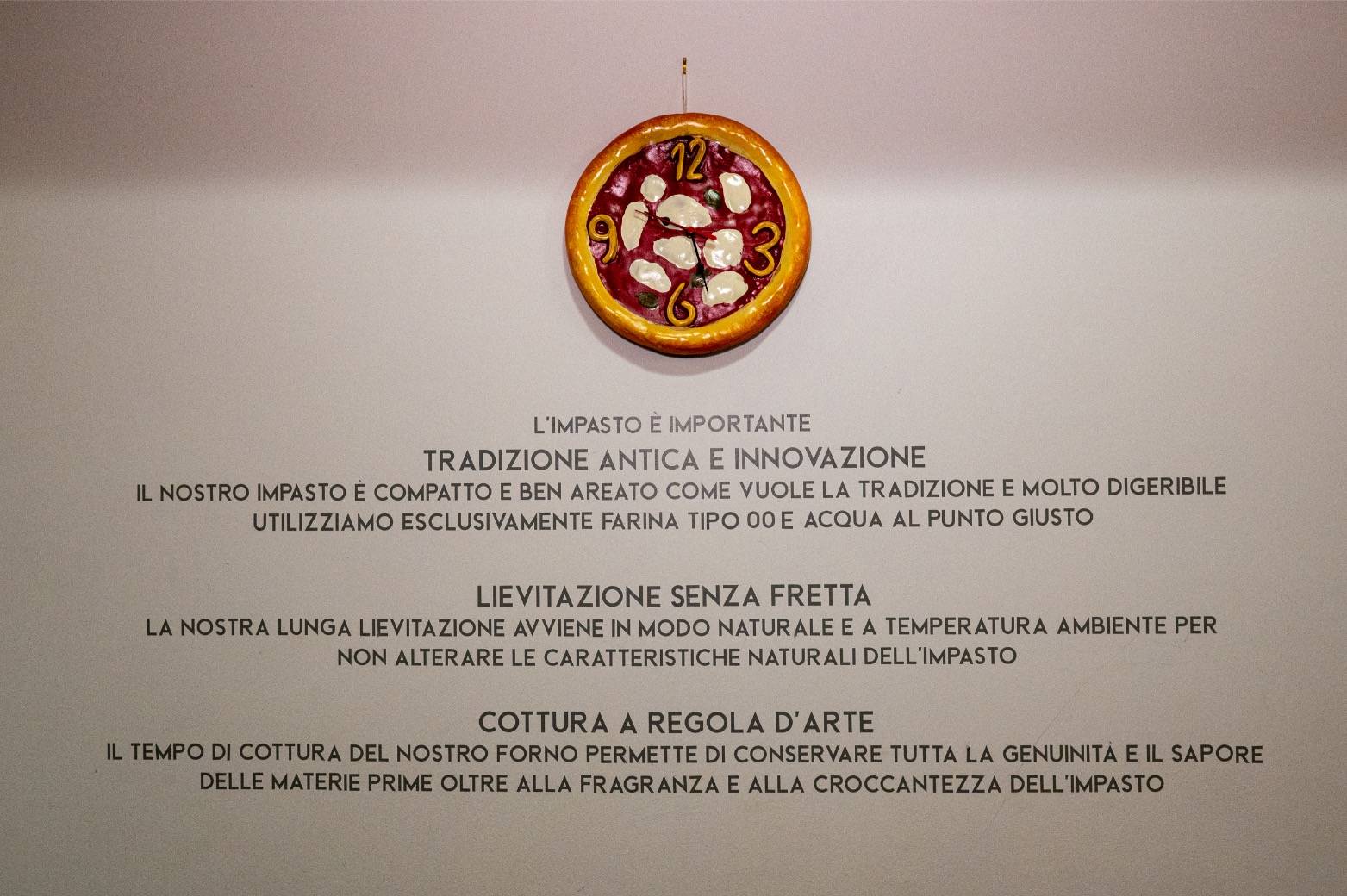IL TEMPO DI COTTURA DEL NOSTRO FORNO PERMETTE DI CONSERVARE TUTTA LA GENUINITA' E IL SAPORE DELLE MATERIE PRIME OLTRE ALLA FRAGRANZA E ALLA CROCCANTEZZA DELL'IMPASTO
